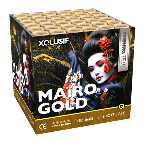 De Mairo Gold uit de Xclusif lijn heeft de allermooiste gouden effecten die je ooit hebt gezien! Voor deze cake is alleen het allerbeste kruit gebruikt. Haarfijne gouden effecten met bij ieder schot een extreem felle gekleurde lichtkogel. Echt een unieke cake van wereldklasse!Specificaties