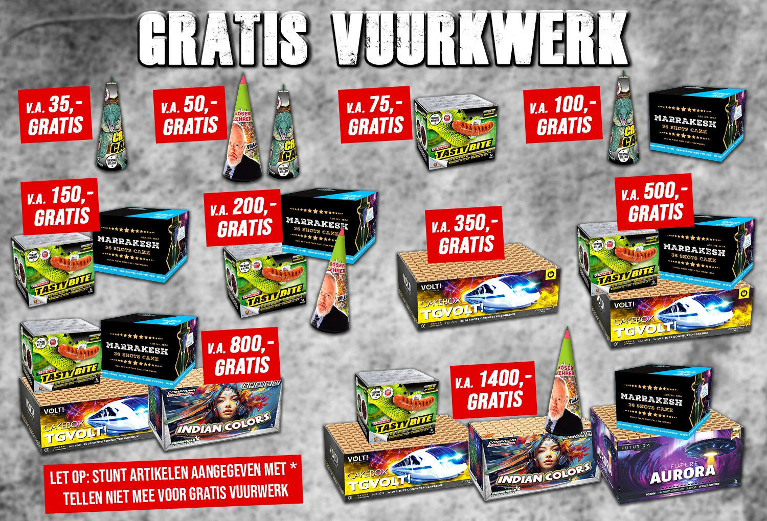 Let op: stuntartikelen, te herkennen aan de ster*, doen niet mee in de telling voor het gratis vuurwerk.